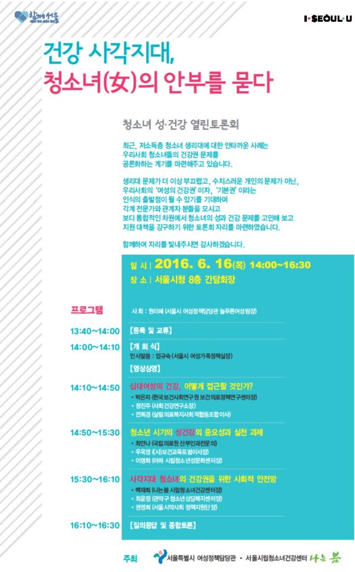 ¼¿ï½Ã¿Í ½Ã¸³Ã»¼Ò³à°Ç°¼¾ÅÍ ³ª´Âº½¿¡¼ °øµ¿À¸·Î ½Ê´ë¿©¼ºÀÇ ¼º °Ç° ¿¸°Åä·Ðȸ ÀÚ¸®¸¦ ¸¶·ÃÇÑ´Ù°í ÇÕ´Ï´Ù.
